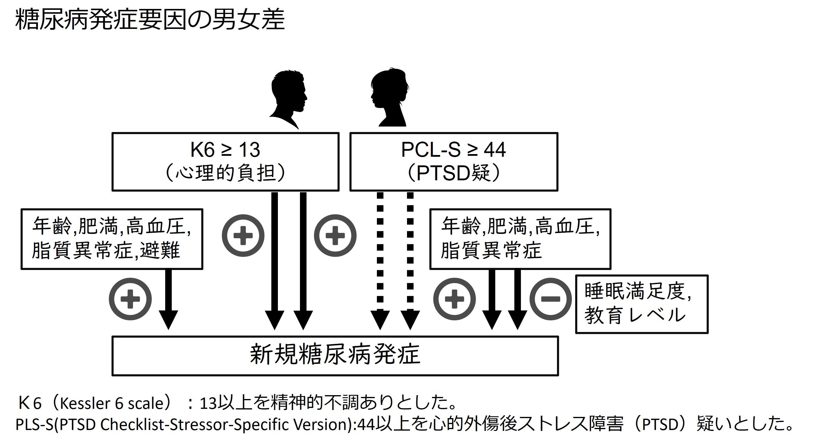心理的負担は男性の糖尿病新規発症を予測する:東日本大震災後の福島県「県民健康調査」における長期観察研究